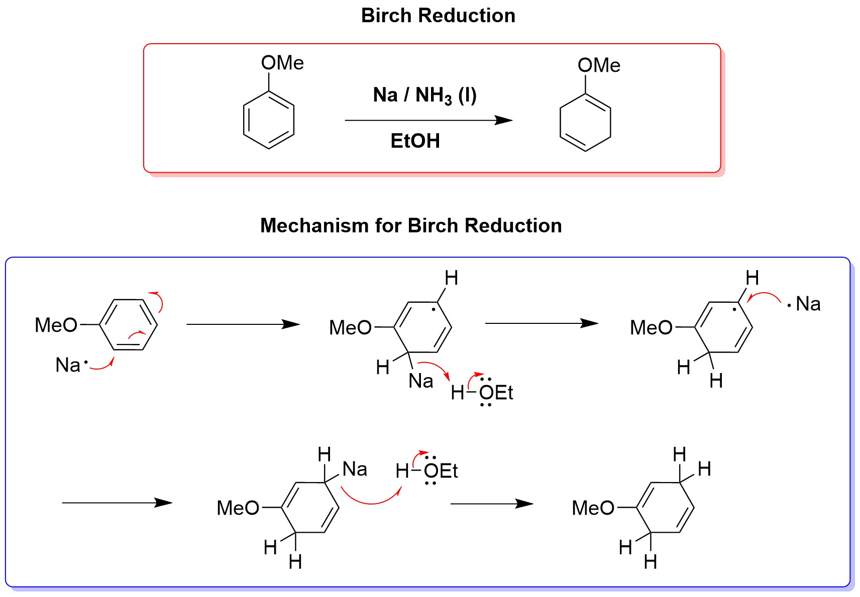Anisole (methoxybenzene) + Na/NH₃/EtOH β†’